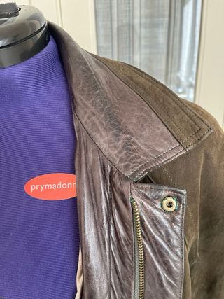 Chaquetón de piel vuelta con un diseño clásico y elegante. - Material: Piel vuelta. - Color: Marrón y verde. - El chaquetón está impecable. - Va forrado y acolchado por dentro, abriga mucho.