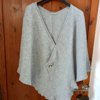 Poncho de punto en color gris, talla única. - Diseño envolvente. - Detalle de broche decorativo. - Adorno en laterales. Solo envios