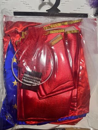 Disfraz de artista de circo de la marca Kimokawaii. - Incluye capa, maillot y tocado. - Diseño con estrellas. - Talla s