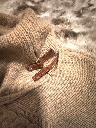 Elegante capa de Massimo Dutti en color beige. Una prenda versátil y cómoda. - Diseño tipo poncho. - Cuello alto con detalle de botones. - Tejido con trenzado decorativo en la parte superior.