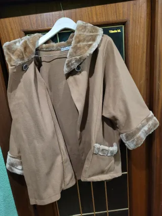 🔥CAPA ABRIGO MUJER ELEGANTE TALLA ÚNICA.🔥 - Capa de abrigo marrón elegante de mujer con un toque acogedor. - Diseño abierto y adorno de pelo sintético en el cuello, puños y bolsillos delanteros. - Cierre en el cuello con 2 botones. - Marca: New Collection. - Fabricado: Italia. - De axila a axila mide: 74 CM. - Mide: anchura (42 CM); altura (77.5 CM); profundidad (3.5 CM). - Peso: 750 GR. 🔴SE HACEN LOTES TAMBIÉN.🔴 #capa #abrigo #mujer #elegante #talla #única #toque #acogedor #diseño #abierto #adorno #pelo #sintético #cuello #puños #bolsillos #delanteros #cierre #2 #botones #marca #new #collection #italia #14.95€