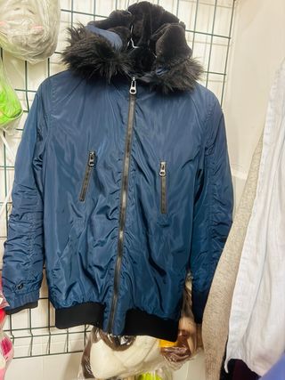 Chaqueta azul con capucha y pelo