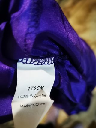 Capa larga de color morado, ideal para disfraces. - Mide 170 cm de largo. - Diseño con capucha. - Tela satinada brillante. En la foto la lleva un niño de 9 años