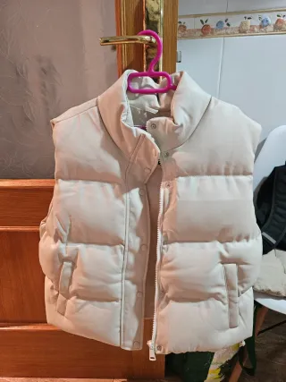 Chaleco acolchado de color beige, perfecto para añadir una capa extra de abrigo. A estrenar!! - Cierre de cremallera. - Bolsillos delanteros. - Cuello alto.
