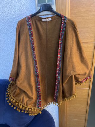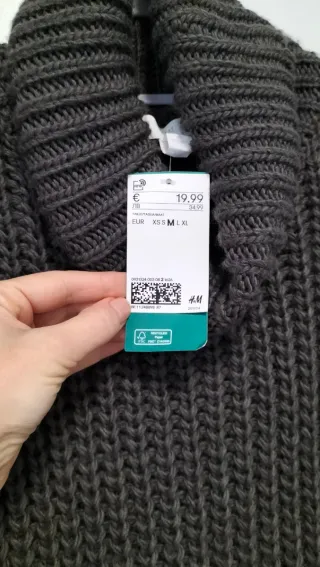 Rebeca de punto con diseño tipo capa. Pone q es talla 48 pero y puede q así sea pero yo gasto la 44 y queda bien puesta porq tiene mucho vuelo - Tejido de canalé. - Cuello envolvente.