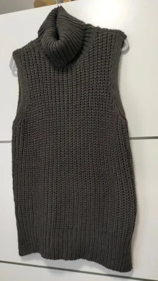 Chaleco largo de punto grueso con cuello alto, ideal para añadir una capa extra de abrigo. Nuevo con etiqueta