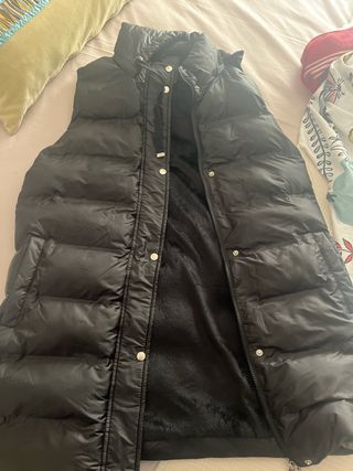 Chaleco largo de mujer, ideal para añadir una capa extra de abrigo. - Diseño acolchado. - Cierre de cremallera y botones a presión. - Forro interior suave.