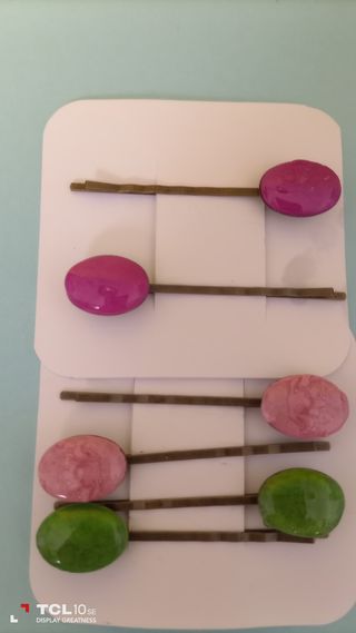 Conjunto de horquillas únicas elaboradas a mano con arcilla polimérica y rematadas con una capa de resina UV para un toque final brillante. - Diseño con detalles en forma de óvalo. nases de camafeo rellenos de arcilla polimérica. Horquillas en tono bronce antiguo. Nuevas a estrenar!!!