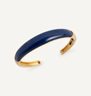 Oferta!!!!! Brazalete rígido Navy bañado con una gruesa capa de oro macizo de 18 kt, lo que garantiza una mayor durabilidad. Destaca por el acetato y la resina en tono azul oscuro, que aportan un aire de sofisticación en clave neutra. Tiene una medida de 60 x 50 mm. Pertenece a la colección Bold, inspirada en las tendencias actuales, con joyas de diseño y siluetas renovadas para una línea que trae color, donde dominan los tonos camel, marrón, caramelo y azul oscuro Son piezas que, sin levantar la voz, transmiten un aire seguro, confiado y decidido.
