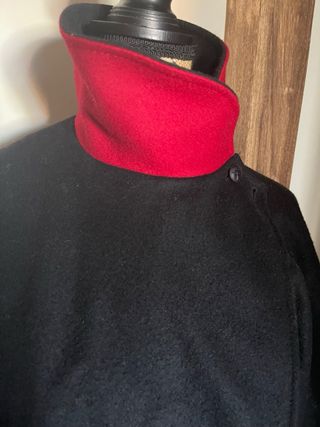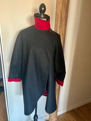 Elegante abrigo tipo capa confeccionado en lana. - Material: 100% lana. - Diseño con cuello alto y detalles en contraste. Sin etiqueta de marca