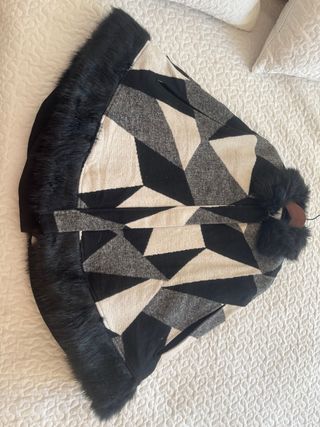 Capa de estilo moderno y sofisticado. - Diseño de talla única. - Acabado con pelo sintético en cuello y mangas.