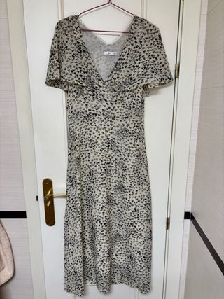 Vestido vaporoso con estampado floral y mangas tipo capa. - Diseño con escote en V. - Tejido ligero y fluido.