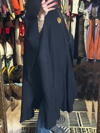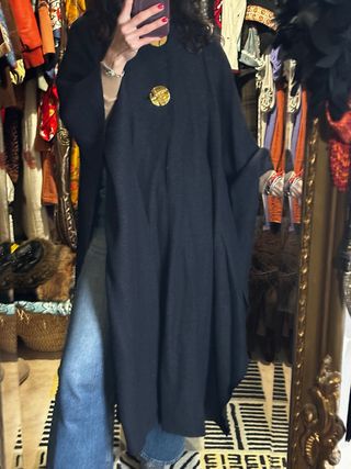 Preciosa capa española de estilo clásico, inspirada en la moda de los años 50. Una prenda elegante y atemporal. - Diseño de capa larga. - Cierre frontal con detalles. - Cuello con solapa.