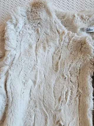 Elegante capa confeccionada en piel de conejo de color azul marino. Su diseño la hace una prenda versátil y cálida. - Material: Piel de conejo. - Textura suave y mullida. - Acabado con flecos en los bordes.