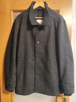 Elegante abrigo de paño en color gris. Una prenda clásica y versátil. - Diseño de paño. - Cierre de botones. - Cuello con solapa.