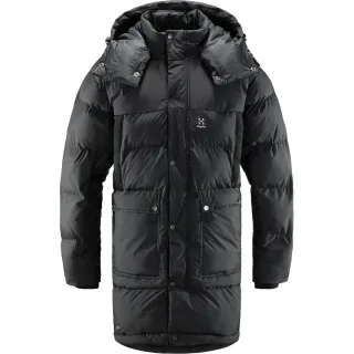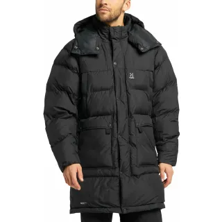 Abrigo largo de Haglöfs para hombre, en color negro. Diseñado para ofrecer calidez y protección. - Capucha ajustable. - Cierre frontal con cremallera y botones. - Bolsillos frontales con solapa y botones. - Puños interiores elásticos.