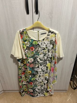 Mono largo con un llamativo estampado floral sobre fondo verde-aturquesado. El diseño es elegante y clásico, con un toque moderno por el estampado. Únicamente puesto en 1 ocasión, de hace 6 temporadas por lo que será difícil que alguien lleve el mismo modelo a cualquier evento. Queda estupendo con una capa en crudo/blanco como las de Zara. Fotos reales puestas al final. - Corte recto. - Tejido ligero y fluido, con forro interior en el mismo tono - Cierre de cremallera oculta. -Tirantes con posibilidad de adaptar. - Pinza en pecho (posibilidad de llevar sin sujetador)