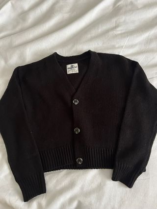 Chaqueta de punto clásica en color negro. Ideal para añadir una capa extra de abrigo. - Cuello en V. - Cierre de botones. - Puños y bajo de canalé.