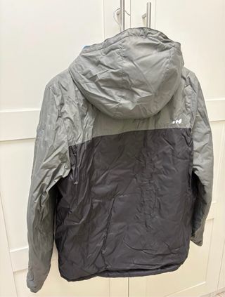 Chaquetón acolchado, gordo con el escudo de la Federación Natación Region de Murcia. Talla - S Con capucha oculta en el cuello. Interior acolchado, compuesto de dos bolsillos interiores y 2 bolsillos exteriores con cremallera. Mangas ajustables, con belcro. Es un chaquetón que llega hasta la cintura baja (no es corta, pero tampoco es un chaquetón tipo 3/4). Se puede quitar el escudo bordado con maña y volver a bordarle otro. Sin duda un abrigo, que repele el agua y abriga bastante. - Cierre de cremallera. - Bolsillos laterales con cremallera. - Cuello alto.