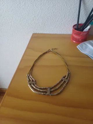 Elegante collar con un diseño multicapa y detalles metálicos. - Diseño de varias capas. - Acabado metálico.