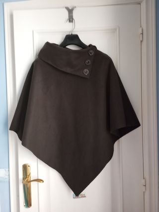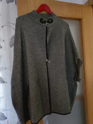 Capa o poncho corto en tejido de paño con lana al 50%. Tacto muy suave. Casi sin usar.