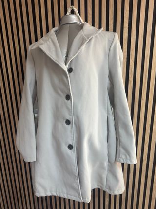 Detalles del diseño: Cierre: Frontal con 4 botones oscuros en contraste. Cuello: Estilo solapa clásica. Bolsillos: Dispone de dos bolsillos laterales integrados en la costura para un acabado limpio. Estado: En perfecto estado, muy poco uso. Medidas reales (ver fotos): Para asegurar que te quede perfecto, he tomado las medidas manualmente sobre una superficie plana: Largo total: aprox. 90 cm (desde el hombro hasta el bajo). Ancho de axila a axila: aprox. 52 cm. Ancho de hombros: aprox. 42 cm. Nota: La etiqueta marca una XL, pero recomiendo revisar las medidas indicadas arriba para confirmar el ajuste deseado