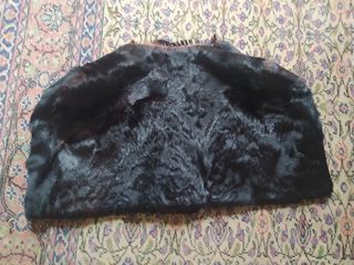De piel de pelo color negro. Medidas de hombro a hombro según el interior del forro 38.5 cm. Y largo 34 cm.