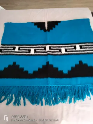 Poncho de lana talla única con estampado en vivos colores tipo Missoni.Hecho a mano .Nuevo sin estrenar. Unisex.Flecos .