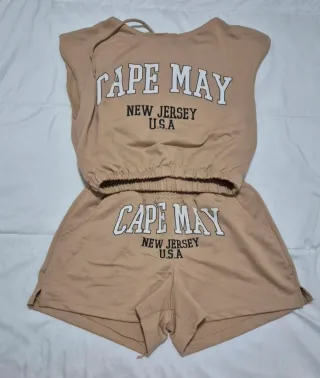 Conjunto casual de dos piezas. - Sudadera sin mangas con capucha. - Shorts con cintura elástica. - Diseño Cape May New Jersey USA en ambas prendas.