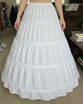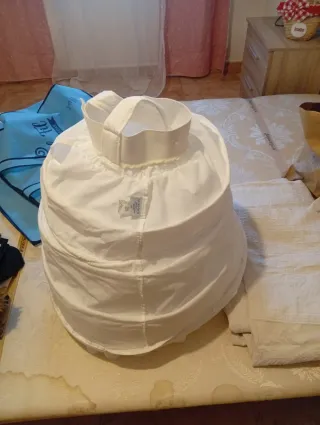 Lote de enaguas, crinolinas, capa y accesorios para vestidos. Incluye 9 unidades. Enaguas con 4, 5 y 6 aros. Ideales para vestidos de novia, disfraces, teatro, época victoriana, medieval, renacimiento, cosplay o fotografía. Incluye capa larga de gasa con capucha. Contenido del lote: Enagua crinolina blanca 5 aros. Enagua crinolina blanca 4 aros con volantes. Enagua crinolina negra 4 aros con volantes. Capa de gasa con capucha estilo boda. Miriñaque victoriano tipo jaula. 2 crinolinas blancas 6 aros. 2 crinolinas blancas 4 aros. EXCELENTE ESTADO. ALGUNAS CON ETIQUETAS. ⚠️ Precio: 45 Euros POR TODO!