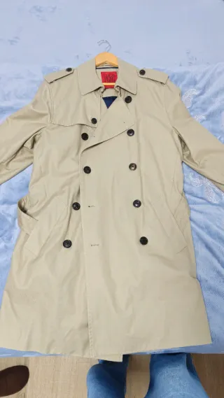 Capa elegante de estilo gabardina, ideal para añadir un toque sofisticado a tu atuendo. - Cierre cruzado con botones. - Cinturón para ajustar a la cintura. - Bolsillos laterales. - Diseño de solapa clásico.