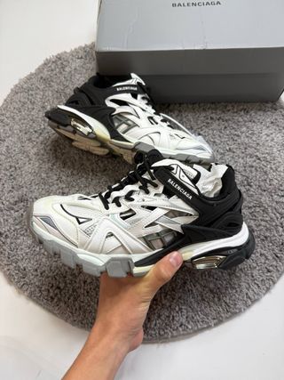 Zapatillas deportivas Balenciaga Track 2 en blanco y negro. Muy buen estado, me los compraron en paris en navidad pero no las uso y ahora necesito dinero muy urgente. - Diseño de capas superpuestas. - Suela gruesa con amortiguación.