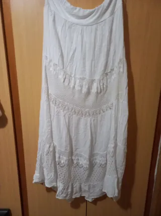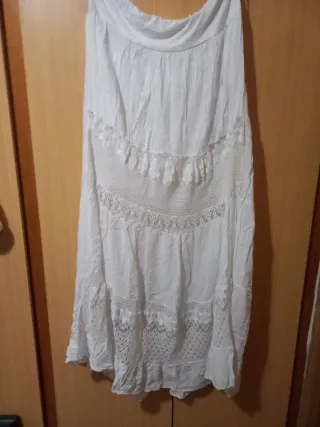 Falda larga de estilo ibicenco, con un diseño vaporoso y detalles de encaje. - Diseño de varias capas con detalles de encaje. - Tejido ligero y fresco. - Cintura elástica para mayor comodidad.