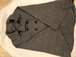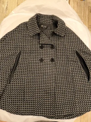 Capa de Mango talla M de color negro, utilizada una sola vez. Abriga y si pones los enganches es de cuello alto, tiene manga xa meter los brazos.