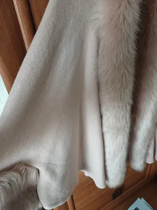 Poncho de mohair (35%) y alpaca (35%). Color nude. Dimensiomes: 70x60 cm. Nuevo sin etiqueta. Precio original € 105.