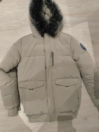 Abrigo de la marca Mkenzie en color beige, ideal para mantenerte abrigado. - Diseño acolchado. - Capucha con detalle de pelo. - Bolsillos frontales con solapa. - Cremallera frontal y bolsillo en el pecho. - Puños y bajo elásticos.