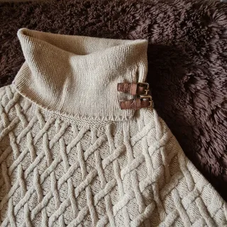 Poncho de punto con un diseño trenzado y cuello alto. Detalle de hebillas en el lateral. - Tejido de punto suave. - Diseño trenzado. - Cuello alto. - Cierre con hebillas.