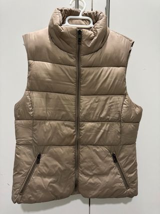 Chaleco acolchado de color beige, ideal para añadir una capa extra de abrigo. - Cierre de cremallera. - Bolsillo lateral con cremallera.
