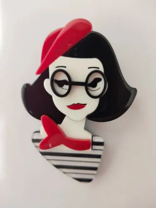 Original boche de mujer moderna, vistoso y llamativo. Material acrílico, varias capas, no pesa. Medidas aprox. máx.: 7x5 cm. (ver fotos). Perfecto para regalo! CB 3.