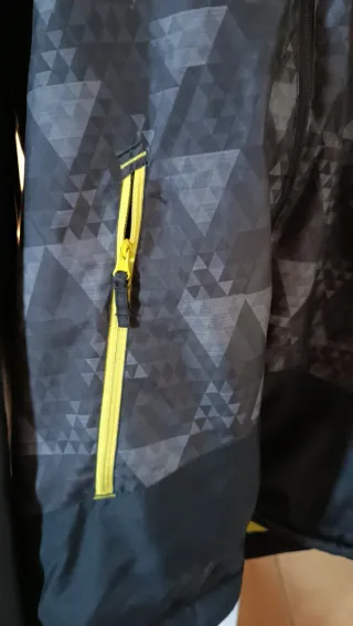 Parka de invierno de la marca Quechua, ideal para mantenerte abrigado. - Diseño con estampado geométrico. - Cremalleras de color amarillo. - Capucha integrada.