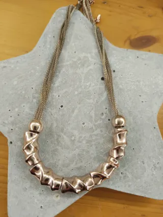Elegante collar de la marca Stradivarius con un diseño único. - Cadena de varias hebras. - Detalle de cuentas con forma retorcida. - Cierre de mosquetón.
