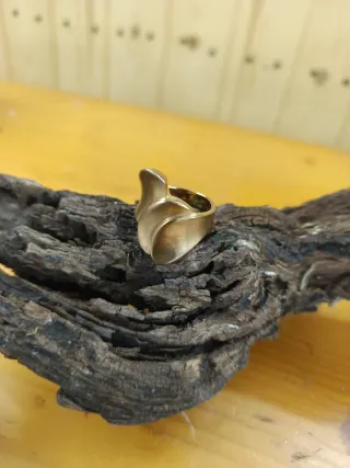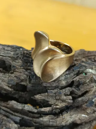 Anillo con un diseño moderno y elegante, perfecto para llevar en el dedo índice. Su acabado le da un toque sofisticado. - Diseño curvo y orgánico. - Material metálico con acabado brillante.