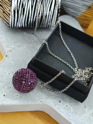 Elegante collar con una bola adornada con perlas brillantes. - Cadena de plata. Plata 925 - Colgante esférico con incrustaciones brillantes.