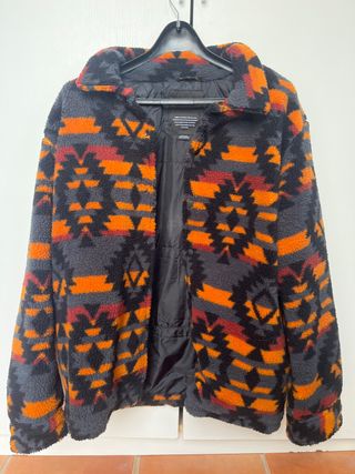 Chaqueta de tejido polar con un llamativo estampado geométrico. - Diseño de cuello camisero. - Cierre de botones. - Bolsillos laterales.