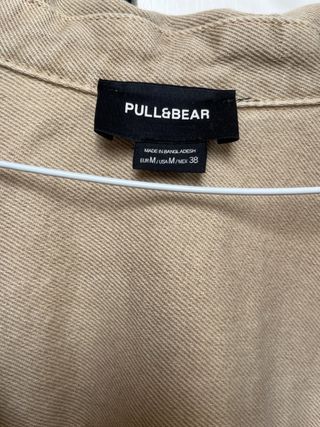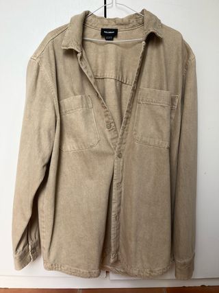 Camisa de manga larga de la marca Pull&Bear en color beige. Presenta un diseño clásico con cuello y cierre de botones. - Dos bolsillos en la parte delantera. - Puños abotonados.