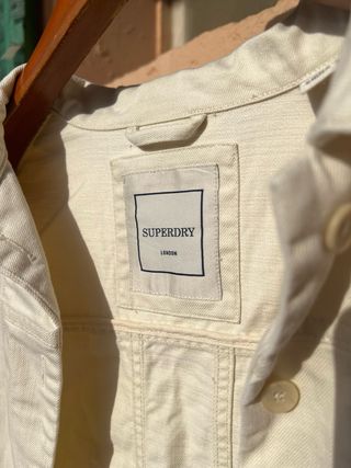 Camisa vaquera de la marca Superdry en un tono crema suave. Un básico versátil para cualquier armario. - Diseño de camisa vaquera. - Cierre de botones. - Bolsillos en la parte delantera. Camisa o chaqueta vaquera Superdry color crema de gran calidad. Unisexo. Talla EU 40. Recogida en Capdepera.