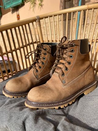 Botas de estilo robusto, ideales para el día a día. - Cierre con cordones. - Detalle de costuras. - Suela de goma antideslizante. Excelente estado, excelente calidad. Entrega o recogida en Capdepera.