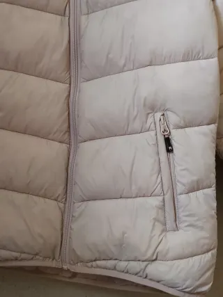 Chaqueta acolchada de Zara con un acabado suave y capucha. - Diseño acolchado horizontal. - Cierre frontal de cremallera. - Dos bolsillos laterales con cremallera.