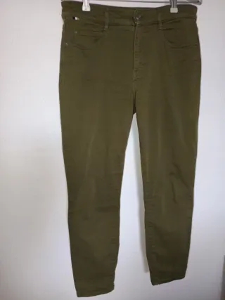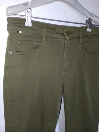 Pantalón de vestir para mujer de la marca Boss en color verde oliva. Un básico elegante para tu armario. Delante tiene una pequeña mancha blanca, se puede ver en la última foto. Apenas se nota. - Corte moderno. - Tejido de calidad.