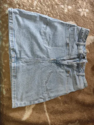 Falda vaquera corta de estilo casual. En muy buen estado sin etiqueta marca desconocida. - Tiro alto. - Bolsillos delanteros. - Cierre de cremallera y botón.